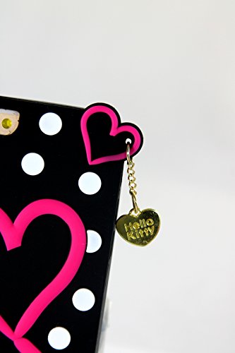 TISHAA 3D Cute Heart Pink Lipstick Kiss Polka Dot with Heart Gold Charm Rubber Silicone Cell Phone Carrying Case