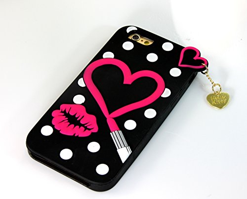 Beautifully constructed Heart, lipstick, kiss and polka dot design on black high quality silicone protective casing - Matte finish, nice to grip and touch.