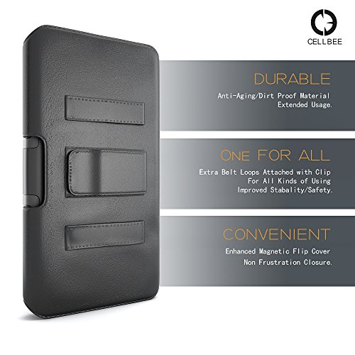 This pouch is equipped with one durable belt clip plus 2 additional secure belt loops and front magnetic closure.
