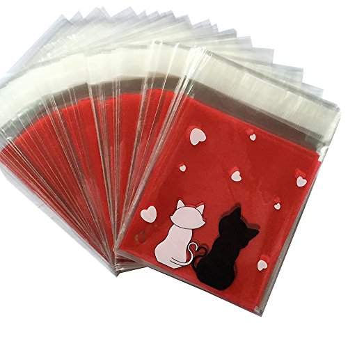 100 PCS Lovely Cute Bowknot OPP Self Adhesive Cookie Bakery Candy Biscuit Roasting Treat Gift DIY Plastic Bag 10*11+3cm(CAT) CF-081