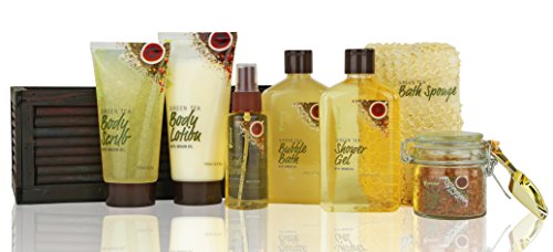 7 pc Green Tea & Argan Oil Aromatherapy Bath Gift Pack in Bamboo Wood BoxKnow someone who deserves a break from the everyday? Looking for a spa gift for mom?