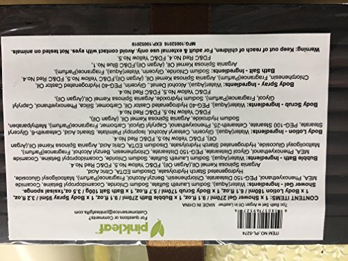 9.1 oz Shower Gel, 9.1 oz Bubble Bath, 9.1 oz Body Lotion, 6.1 oz Body Scrub,