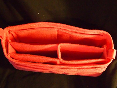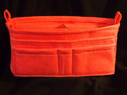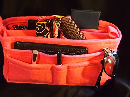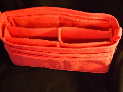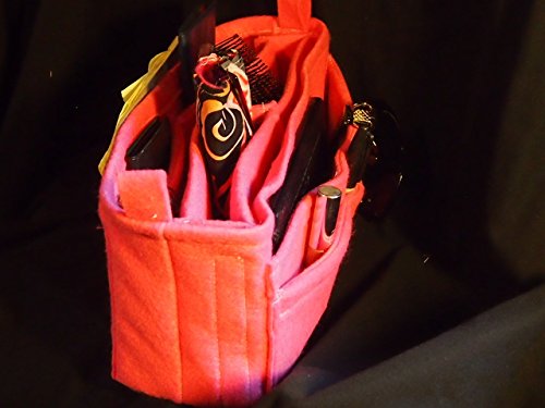 Product Description READY TO SHIP Keep your Purse organized and Clean with the Original Felt Bag Organizer Strappystyles ready to ship Pink Felt organizer Perfect for organizing your handbag, this insert fits in any purse that measure about 12.5" wide (side to side) 8 " tall or taller and 6" deep. Four pockets on outside front.- 2-5"x5", 1-pen pocket 2"x5", 1-12"x5"-- One back pocket on outside 12" by 5".-- One 2 slot removable divider slot measure 6"x5"-- 2 Pockets on inside back 6"x5".-- Total of 8 pockets.-- Plus open center space-- Tabs on top-- All Strappystyles felt insert come with a sturdy removable bottom piece. (bottom shaper) Hard Sturdy bottom No sagging bottoms when you change from one bag to another with one hand.. Quick and easy... Keep from losing your stuff.. Order Today.. Made with felt. -- Hand wash, Air dry 0