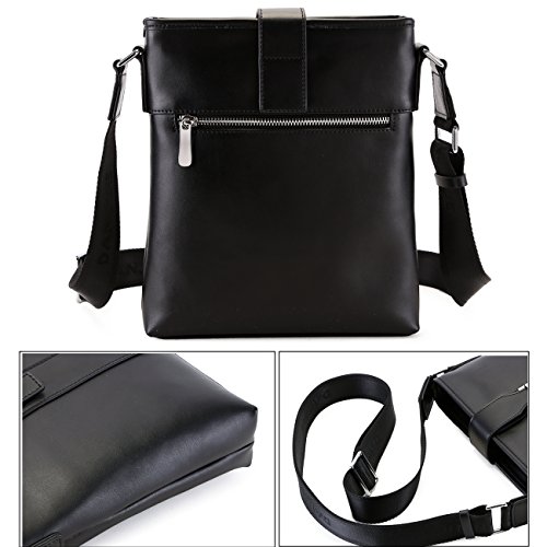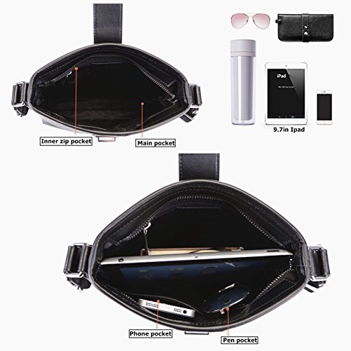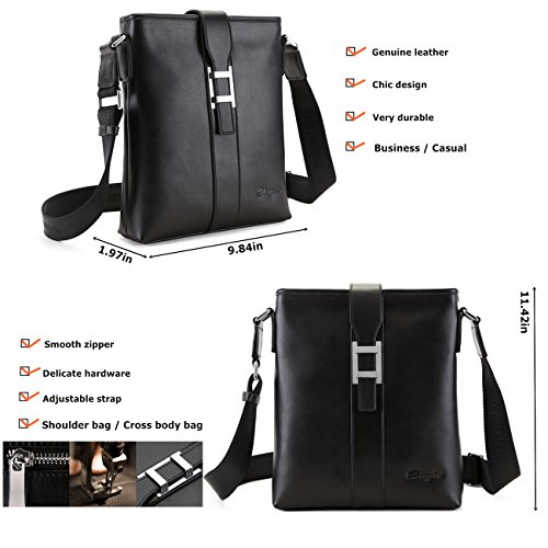 -. Feature : [Material /Fabric]: Second layer of cowhide leather(Genuine products. 100% brand new, original and high quality) with polyester lining. / [Hardware & Closure & Color] : High quality silver hardware. Zip closure. Black. 1 color for your needs. Use it as casual bag, travel bag, IPAD bag or business bag as well. Perfect for everyday use, work or travel. / [Structure]:1 main pocket, perfect for your IPAD, mobile phone, and other daily things. 1 inner zipper pocket, 1 Iphone 6s pocket, 1 pen pocket, 1 rear pocket. 1 adjustable shoulder strap. It is convenient & comfortable to wear in 2 ways, shoulder and cross body. / [Dimension]:9.84(L)*1.97(W)*11.42(H)(in). 1 size for your needs. Please allow 0.3"-0.9" in size error due to manual measurement. / [Features]:Fashion, practical and light-weight. The style is trendy with the clear black and the H shape hardware which can be matched with many different clothes. It looks so chic and luxurious. Wherever the handles or hardware, it is durable and comfortable. Hope this bag could be your loyal friend keeping company with you for every adventure both near and far.