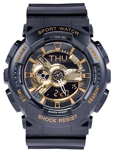 -. Title : Boys Watch Orange Multifunction Dual Dial Analog Digital Jelly Colorful Watches For Kids Black+Gold