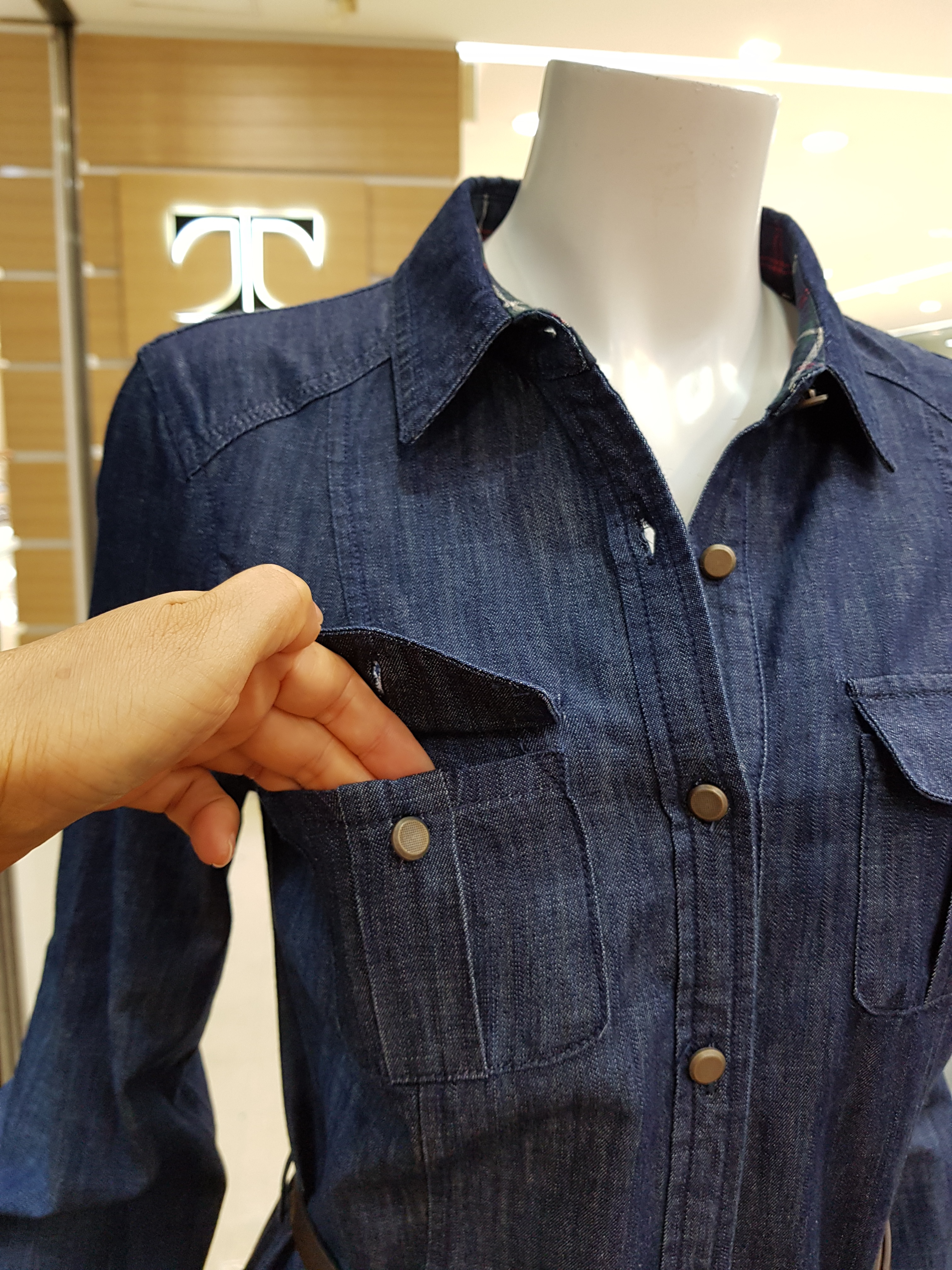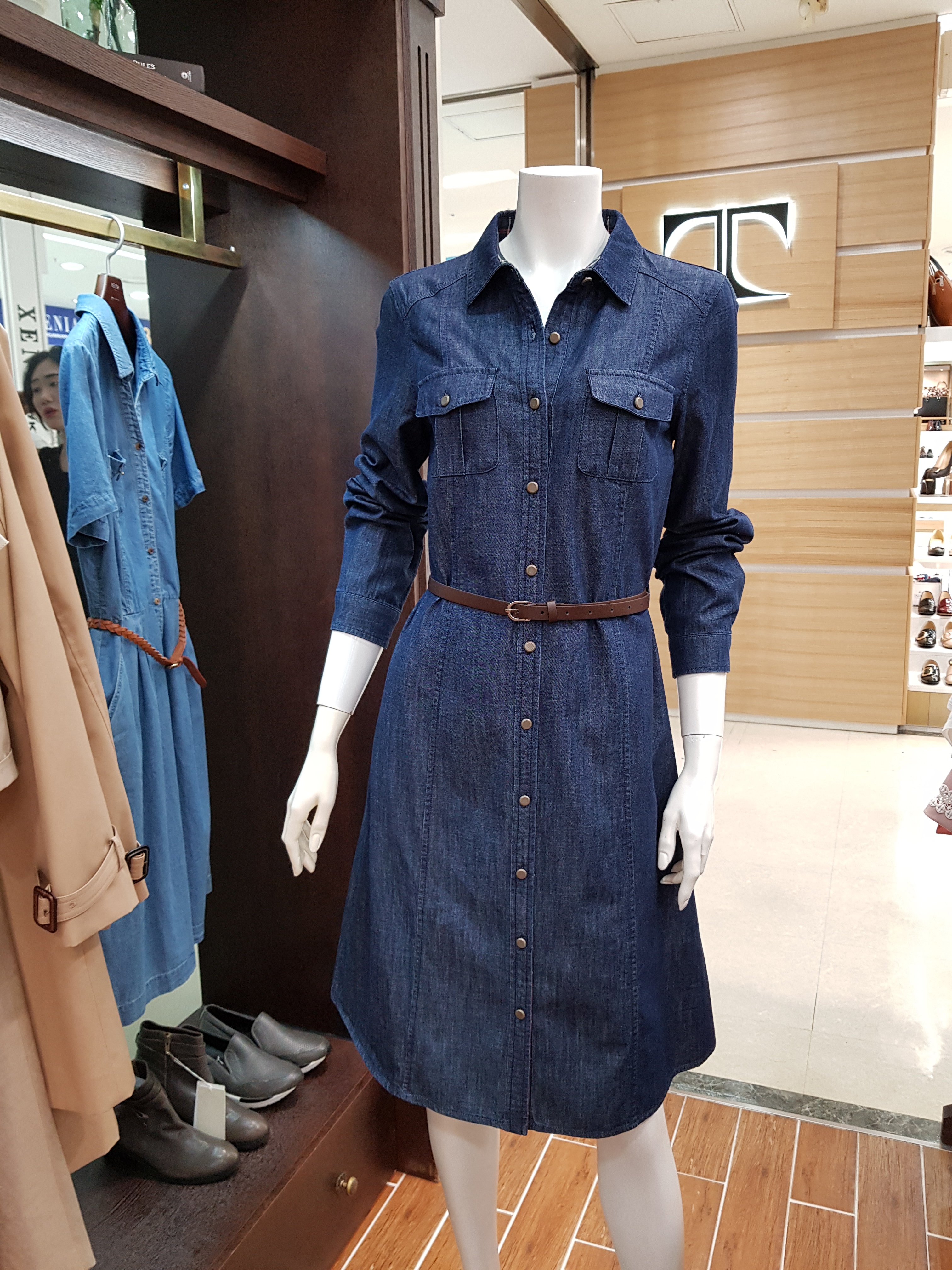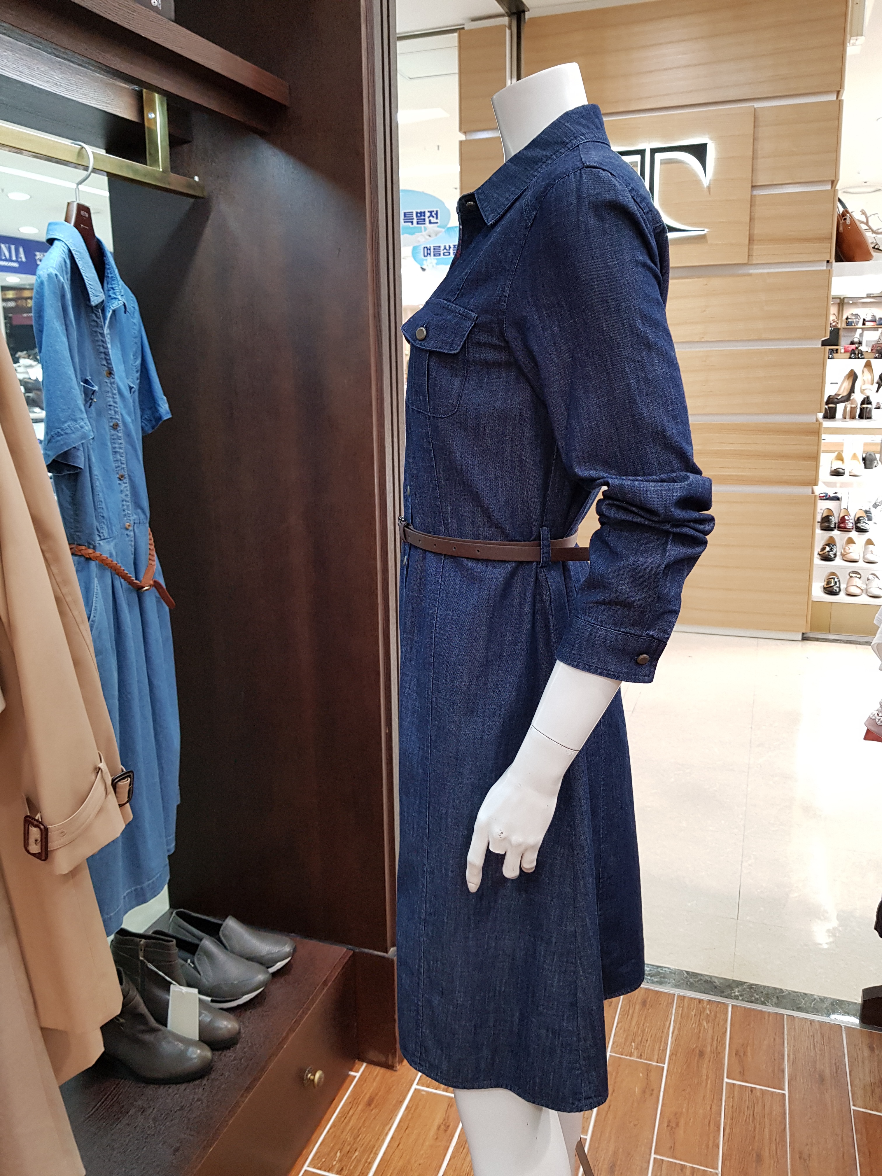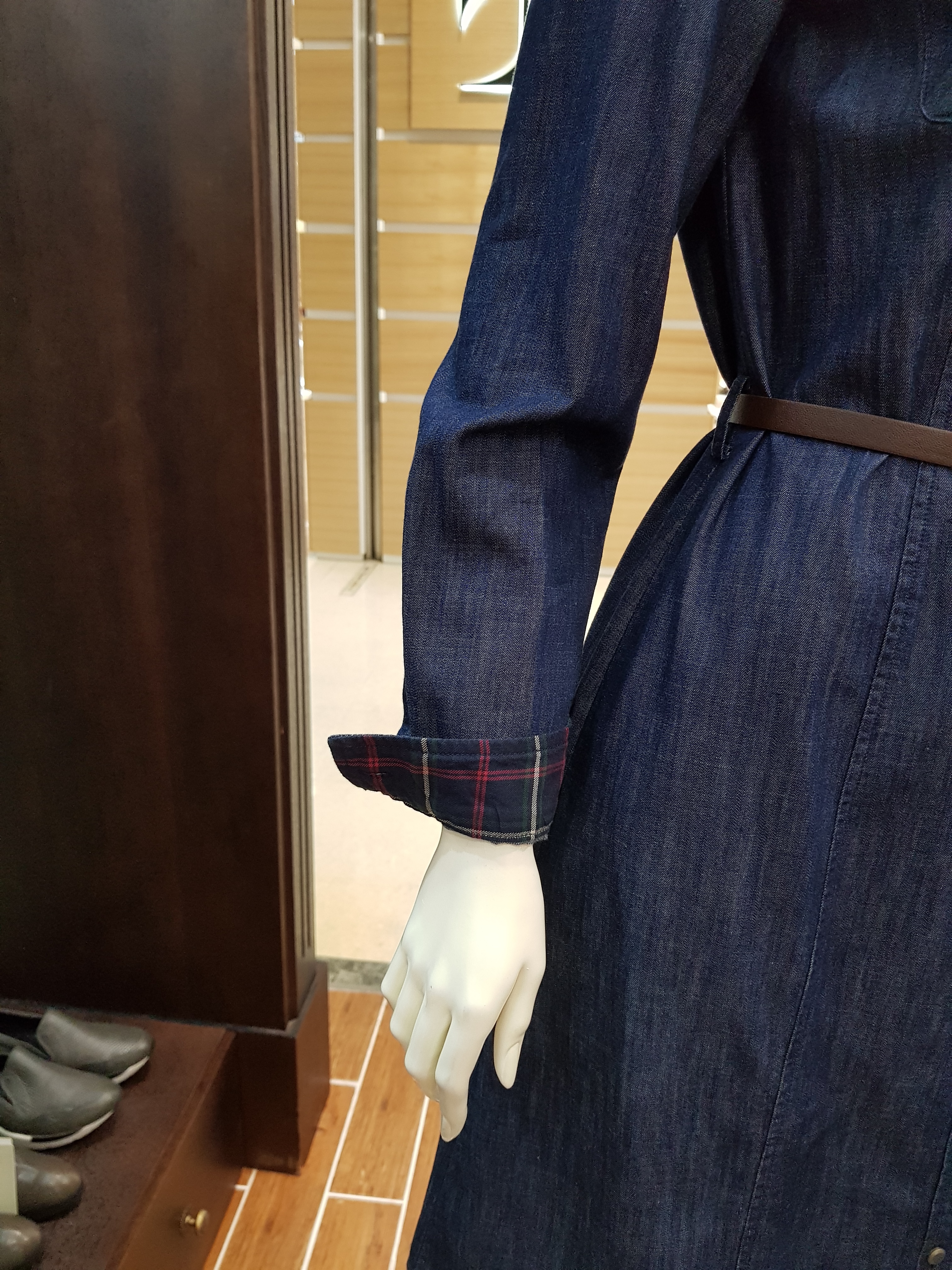 블룸스버리~슬림한핏의 날씬해보이는 데님원피스입니다 캐주얼한 분위기의 데님이지만 허리라인이 슬림해 여성스러운 분위기 연출이 좋으며 트랜치코트나 코트속에 착용하면 세계절을 활용하기좋은 아이템입니다 총장98센티입니다 목선과 소매끝의 체크가 포인트입니다