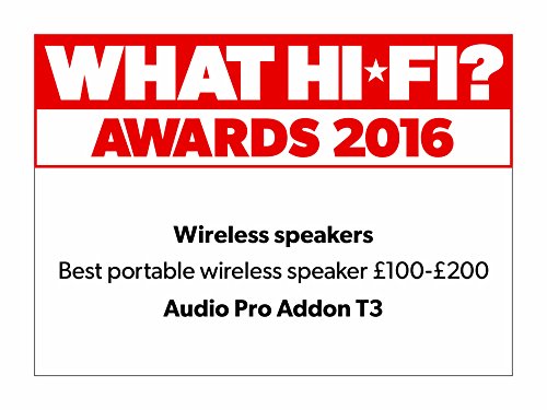 -. Binding : Electronics -. Brand : Audio Pro -. Feature : LONGEST PLAYTIME: Addon T3 is designed to be used for a long time. The battery lasts a full 30 hours at half volume. And 12 hours at maximum volume! / BLUETOOTH 4.0: Addon wireless speakers use the latest Bluetooth ® 4.0 standard for best sound quality and transmission. You can play your music wirelessly from any Bluetooth devices; iOS ®, Android ®, Windows Phone ® and Mac / PC. / CONNECT EVERYTHING: Besides playing music wirelessly with Bluetooth, there is an additional audio input to connect other audio sources with cable. / POWERFUL SOUND: With a total of 25W and advanced DSP, Addon T3 delivers a purely amazing sound from such a small speaker. / USB FOR CHARGING: Because the T3 has such good battery power, you can charge your smartphone by connecting it to the USB power supply port (models may vary). -. Label : AUDIO PRO -. Manufacturer : AUDIO PRO -. Model : T3 EU/US cable -. PackageQuantity : 1 -. ProductGroup : Speakers -. ProductTypeName : PORTABLE_AUDIO -. Publisher : AUDIO PRO -. Studio : AUDIO PRO -. Title : AUDIO PRO Addon T3 Portable Bluetooth Speaker
