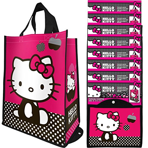 Vandor (8 Pack) Reusable Hello Kitty Tote Bag For Kids Girls Cute Bulk Set Foldable For Purse College