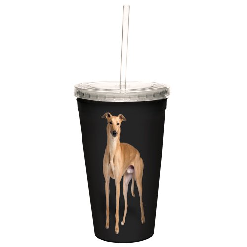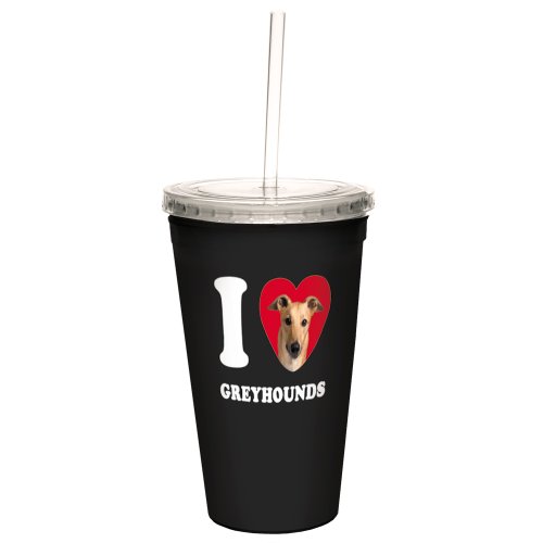 Tree-Free Greetings CC35064 I Heart Greyhounds Artful Traveler Double-Walled Cool Cup with Reusable Straw, 16-Ounce, Tan