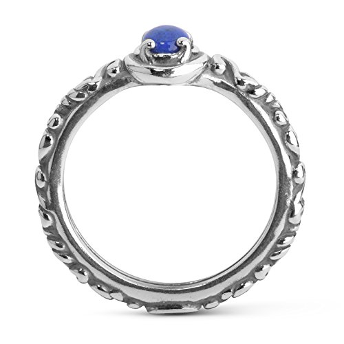-. Feature : Sterling silver ring / 0.5ct Lapis gemstone / Ring measures 1/8" tall x ¼" wide / Designed and crafted in America with gemstones from around the world / Round, prong-set blue lapis gemstone with scroll details that wrap all the way around the sterling silver band.