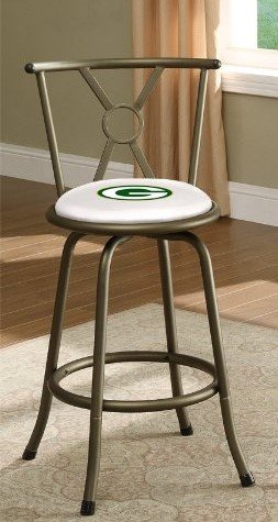 -. Feature : Packers Logo / Bronze Finish / Swivel seats with a backrest / Vinyl Padded Seat Cushion / 24" or 29" Adjustable Seat Height