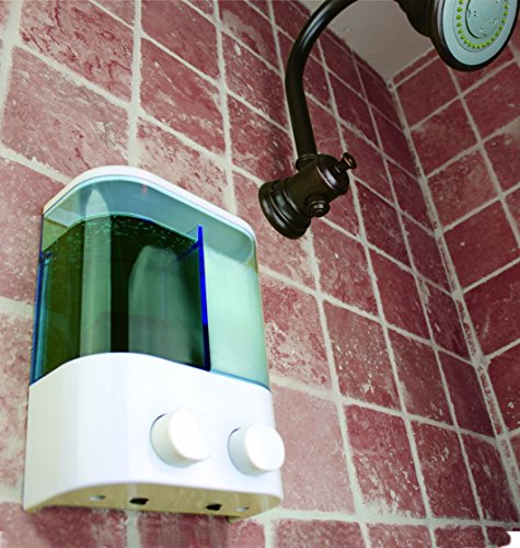 TWO CHAMBERS TO FILL - Streamline your bathroom and shower by eliminating clutter and organize with the dual liquid pump dispenser. Dual, push button action dispenses the perfect amount of soap every time. The clear container allows you to view the contents inside so you know when to refill. Made of durable high-quality ABS plastic.