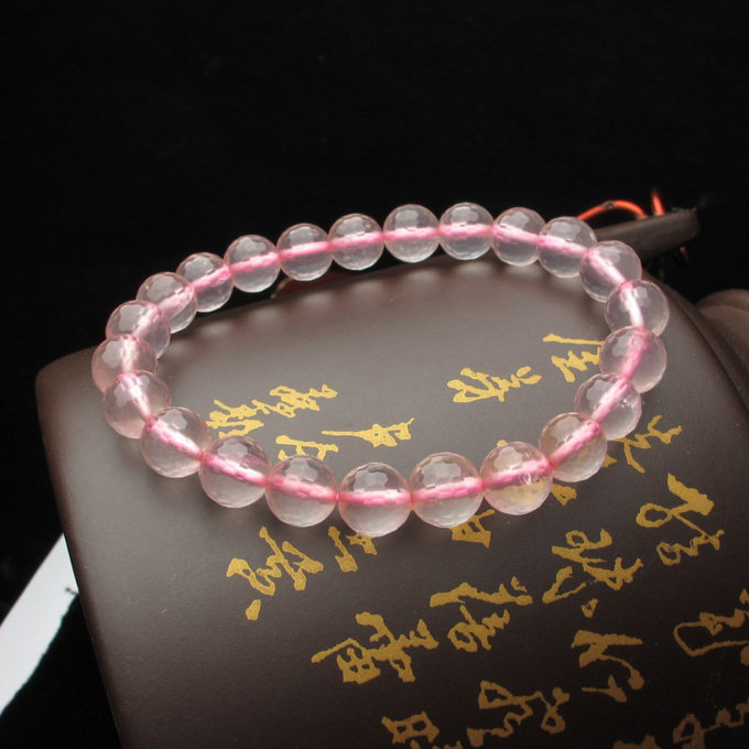开光天然冰种粉水晶手链 芙蓉晶手串 女士饰品