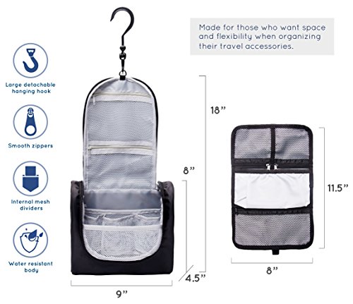 -. Binding : Misc. -. Brand : TravelZen -. Department : womens -. Feature : A unique set perfect for men or women wanting space with flexibility in their travel accessories. / It's truly your choice on what to carry in the soft, adjustable and multi pocketed trifold wallet. / The spacious toiletry bag fits enough for a small family during travel or in the bathroom. / The large, detachable and rotatable hook hangs in any condition. / Plus it's built to last with sturdy, water resistant material and quality zippers that don't snag. -. IsAdultProduct : 0 -. ProductGroup : Beauty -. ProductTypeName : BEAUTY -. Title : Flexi Travel Toiletries Kit - Hanging Toiletry Bag w Multi Use Wallet