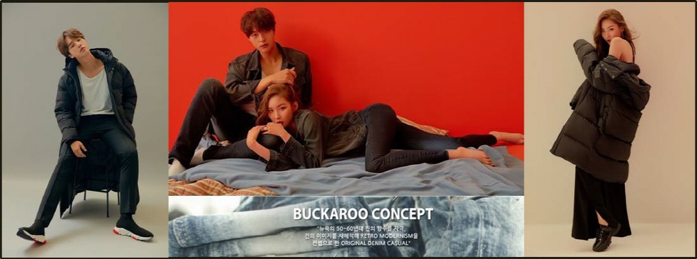 | - | 한국을 대표하는 진 캐주얼로 정면승부하며 모던한 새로움과 낡음의 친숙함 (뉴욕의 50~60년대 진의 향수를 자극하는)을 재해석해 retro modemism을 컨셉으로 original denim jean casual이다. 버커루는 카이보이 속어. 전통데님진의 의미를 포함하고 있다. |