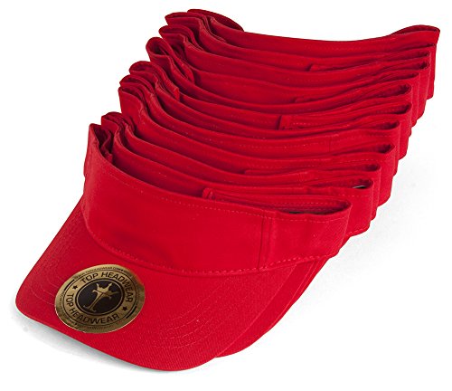 (TOP HEADWEAR)/Accessories/Hats/DIRECT FROM USA/Blank Adjustable Visors - 12-Pack - Red