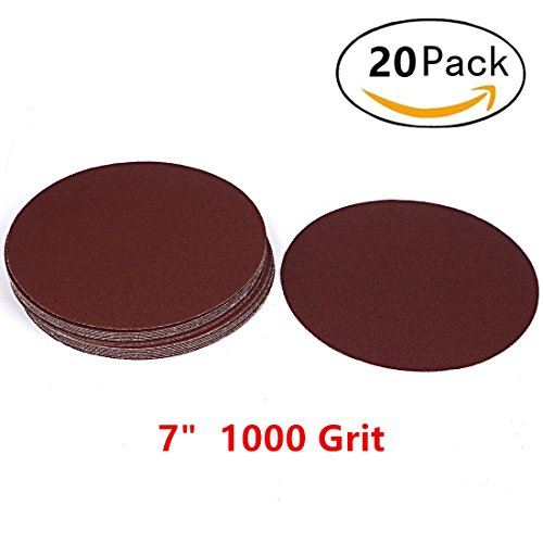 Adiyer [20 Pack] 7-inch 1000 Grit Hook and Loop Sanding Discs Sandpaper, Aluminum Oxide Abrasive
