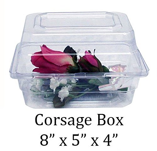 Boutonniere Flower Box Clear Prom Wedding Corsage Craft Container w/ Crafting eBook (8" x 5" x 4", 10 Count)