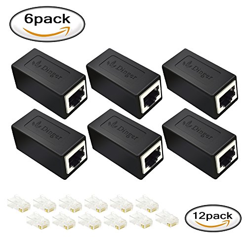 Dinger RJ45 Coupler 6 Pack Network Cable Coupler with 12pcs RJ45 Plugs Connector for Cat7 Cat6 Cat5e Cat5 Coupler (Black-6 Pack)