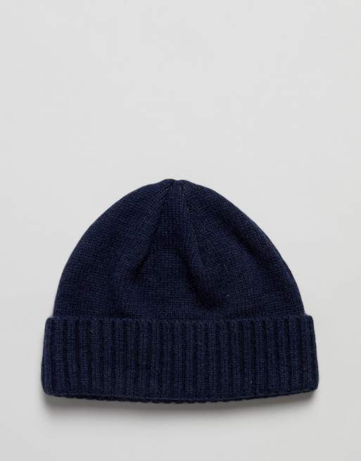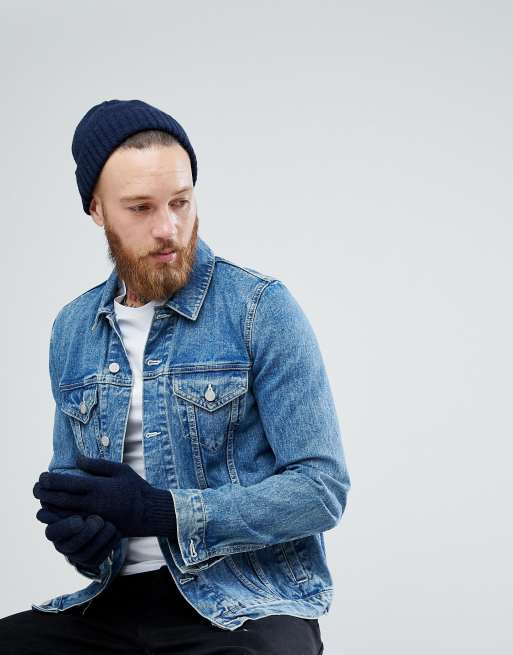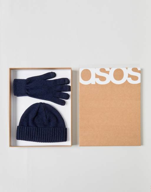 ASOS Lambswool Fisherman Beanie & Gloves Boxed Gift Set In Navy