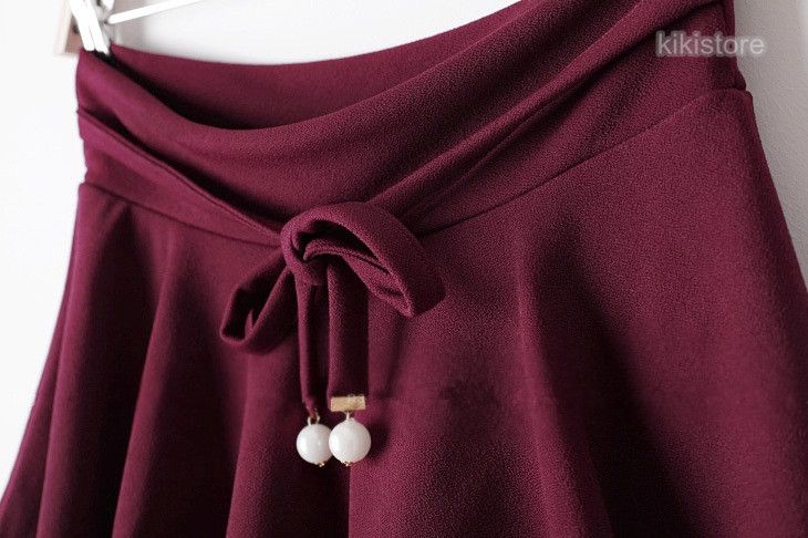 Fitted elastic high waist,flared shape with swing pleats.