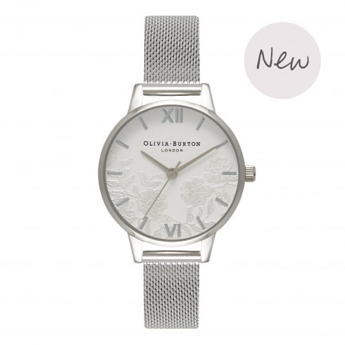 -. Title : Olivia Burton オリビアバートン LACE DETAIL ホワイト × シルバー メッシュバンド 30mm 女性 レディース 腕時計 [並行輸入品]