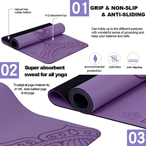 - ✔ NON-TOXIC & ENVIRONMENTAL & COMFORTABLE: Be made of Organic, natural tree rubber and skin-friendly surface and excludes toxic chemicals, PVC or latex.It fits all kinds of yoga,gym,travel and studio.Ideal size 26.8"(wide) x 72.8"(long) adapt for all yogists and sporters.