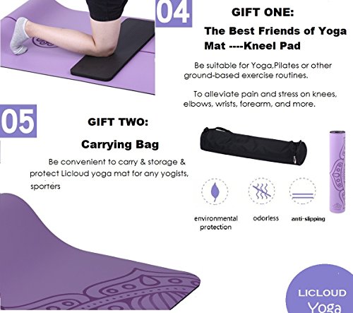 Licloud Yoga Mat With Knee Pad Eco-Friendly Non Slip Non-Toxic Thick Workout Mats With Carrying Yoga Mat Bag