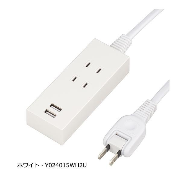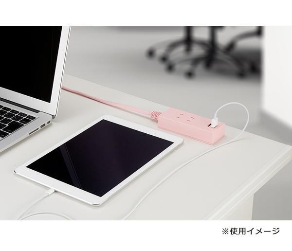 | スマートフォンなどのデジタル機器に直接充電が可能なUSBポートが2個!!コード長さは1.5mで、プラグはホコリや湿気によって発生するトラッキング火災を予防する絶縁カバー付きです。 |