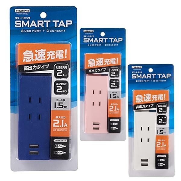 | 仕様 | コンセント口数:2口(合計1400Wまで) USBポート:2ポート(合計2.1Aまで) 絶縁カバー付きプラグ(耐トラッキング仕様) プラグ形状:スイングプラグ(180度可動) コード長:約1.5m 取扱説明書(台紙に記載) |