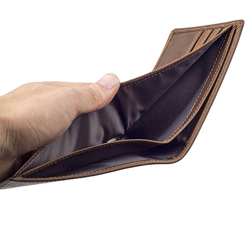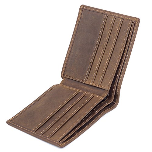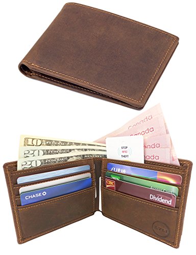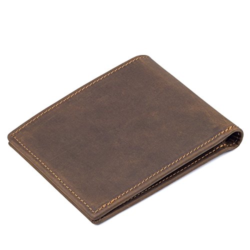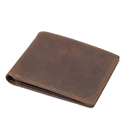 Binding : Apparel Product Description RFID Blocking Genuine Full Grain Leather Wallet. Come with free leather keychain. This wallet is made with crazy horse leather, which are full grain leather treated to feel and look aged while retaining its toughness. The more you use it, the better and more unique it looks. A scratch or rub turns the leaterh fibers to a different shade. They are also water resistance. RFID chips work by using radio waves to communicate. Credit card's RFID information is vulnerable by just being closer to these devices. RFID hackers can scan you through your pocket. Our RFID blocking wallets use military-grade blocking material and creates firewall to encase your cards. 0