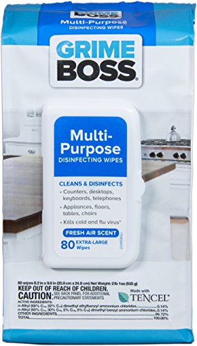 Grime Boss Multi-Purpose Disinfecting Wipes, 80 Count (Pack of 8)