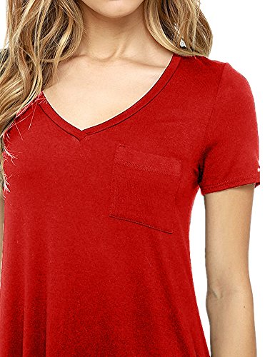 Haola Women's Summer Short Sleeve V Neck Shirt Dress Cute Pocket Loose Dress L Red
