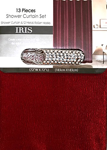 Iris Luxury Fabric Shower Curtain: Shimmering Textured Jacquard Cloth, 70" x 72" Inch, Red Burgundy