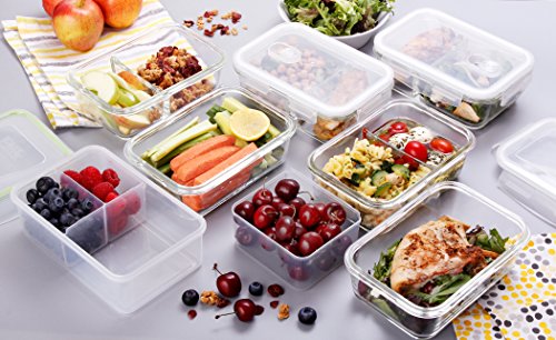 Invest In High Quality, Durable and Sustainable Meal Prep Containers That Will Last Made of?high resistance glass, these food storage containers were designed to outlast all your old lunch boxes and serve you for a long time.? The?airtight lid?closure design keeps your lunch food?container securely locked, while the?leakproof?and airtight seal helps keep your food safely contained, saving you from the hassle of cleaning spilled liquids in your lunch bag.? The containers are MICROWAVE, OVEN, FREEZER DISHWASHER SAFE (top rack) and FDA Approved.?Each lid is made out of?BPA Free?material and has a?vent feature.? These elegant?reusable eco-friendly glass containers are a must have tool for healthy meal planning and eating. Their perfect size will help you keep your?portions under control and?will fit into any meal prep or lunch bag.?