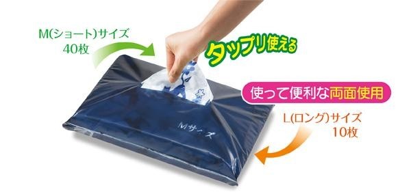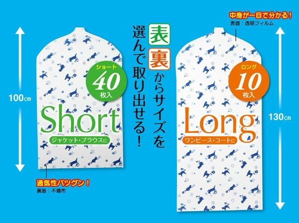 50枚入りの収納ケースからティッシュのように必要な分だけ1枚ずつ取り出せます。収納ケースの表面からはショートサイズ、裏面からはロングサイズと取り出し口もサイズ別に違うので使いたいサイズをすぐに取り出せます。背面は通気性の良い不織布、表面は中身が一目で確認できる可愛い柄入りの透明フィルムです。ジャケットやブルゾンの収納にはショートサイズ、ワンピースやコートの収納にはロングサイズと使い分けできます。 |