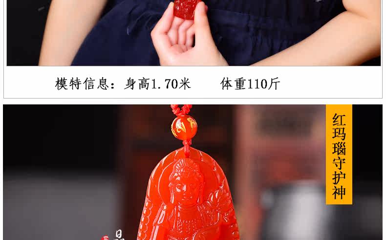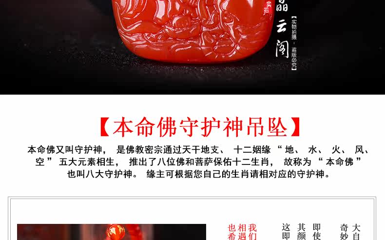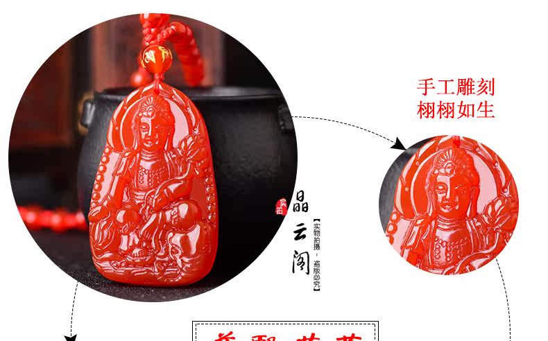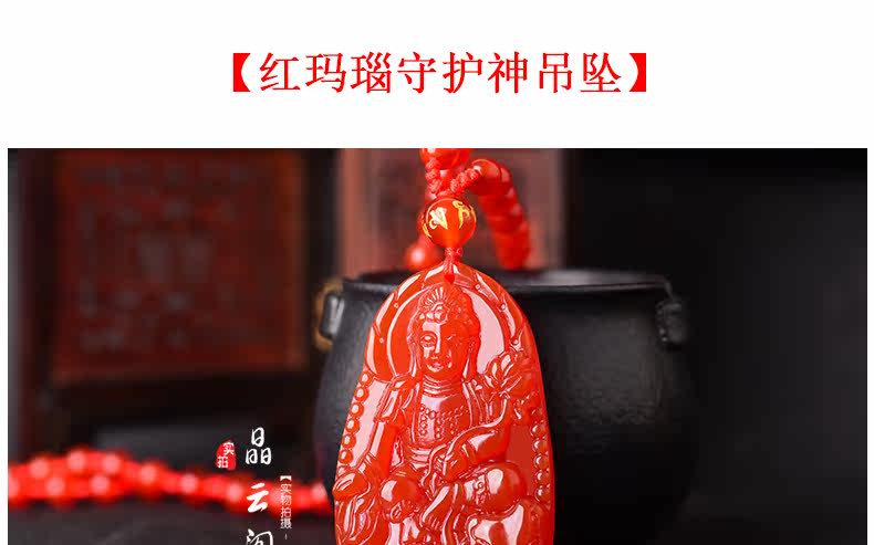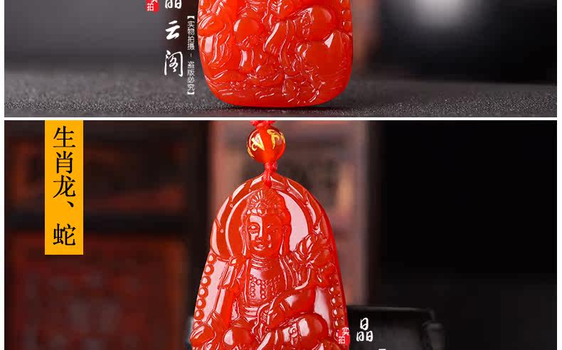 开光天然红玛瑙普贤菩萨项链 十二生肖属龙蛇本命佛男女水晶吊坠