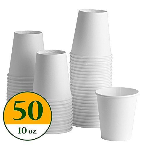 10 oz Paper Cups , Hot Drink Cups , White - 50 Count, Great For Coffee, Tea, Hot Cocoa