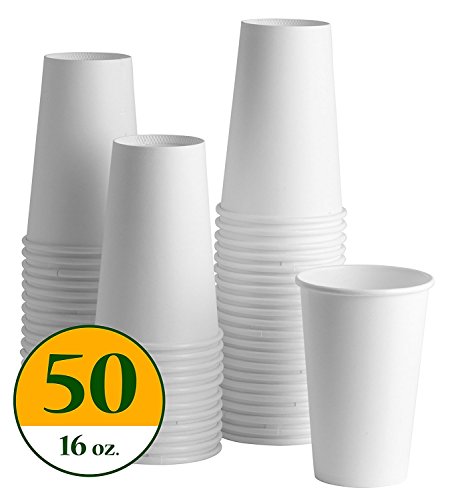 16 oz Paper Cups , Hot Drink Cups , White - 50 Count ,Great For Coffee, Tea, And Hot Cocoa.