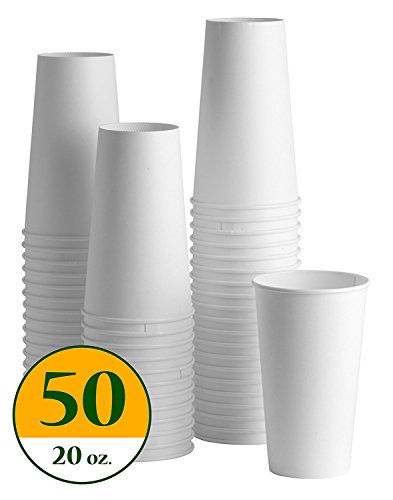 20 oz Paper Cups , Hot Drink Cups , White - 50 Count, Great For Coffee, Tea, And Hot Cocoa