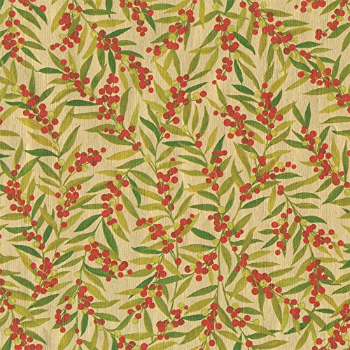 Entertaining with Caspari 96490RC Berry Branches Foil Continuous Gift Wrap Roll, 8', Gold