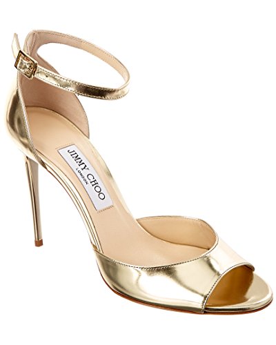 Studio : Jimmy Choo Publisher : Jimmy Choo Binding : Apparel Product Description Please note: Size selections are European. For US conversions, please reference size chart.. Made in Italy. Color/material: gold metallic leather. Design details: gold-tone hardware. Adjustable ankle strap with buckle closure. Lightly padded leather insole. Smooth leather sole. 4in heel. Please note: All measurements are approximate and were taken from a size 39; slight variations may occur. 0