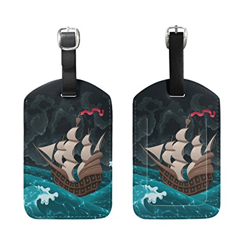 (Hokkien)/Accessories/Luggage, Bags Travel/DIRECT FROM USA/Blue Viper PU Leather Luggage Tags Personalized Ship Sailing On The Sea Pattern Suitcase Labels...