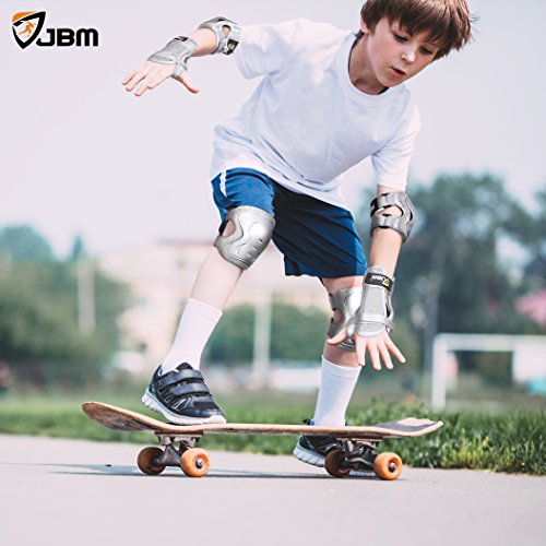 JBM Children Cycling Roller Skating Knee Elbow Wrist Protective Pads--Black / Adjustable Size, Suitable for Skateboard, Biking, Mini Bike Riding and Other Extreme Sports