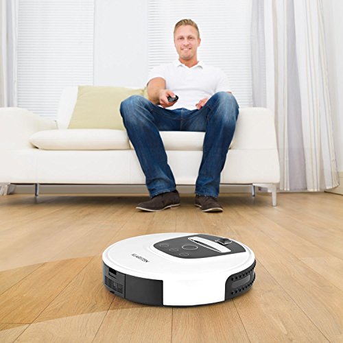 KINDERLEICHTE BEDIENUNG: Die Bedienung erfolgt uber eine Drei-Tasten-Steuerung am Reinigungsroboter selbst oder uber eine Fernbedienung. Uber einen Timer lassen sich fur jeden Wochentag genaue Arbeitszeiten festlegen, zu denen der Staubsauger ausrucken soll.