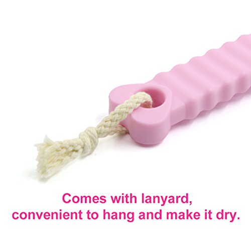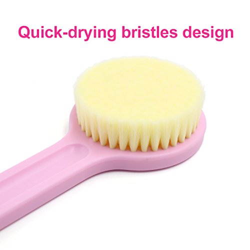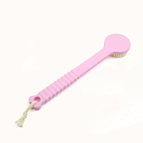 uxcell® Pink Bath Body Brush Bristles Exfoliating Body Massager w/ Long Handle for Dry Brushing and Shower