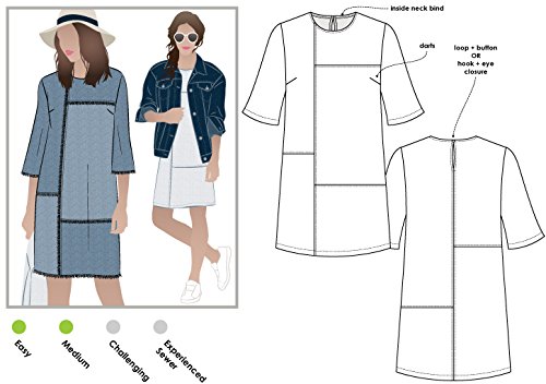 -. Title : Style Arc Sewing Pattern - Jema Panel Shift Dress