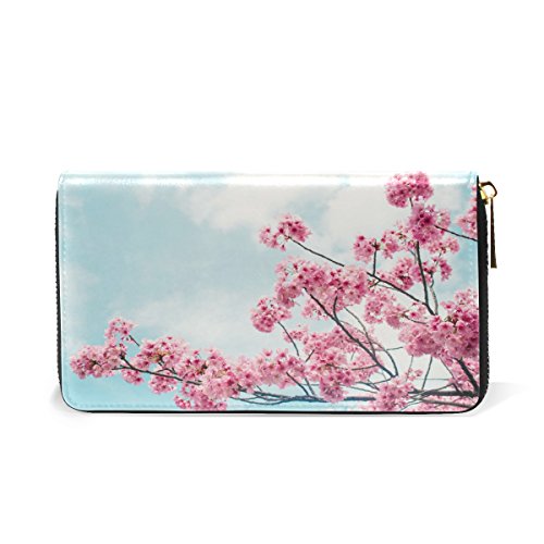 -. Title : Cherry Blossom Floral Clutch Purse Long Real Leather Wallet And Handbag Zip Around