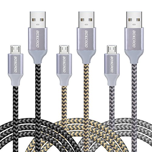 USB Cords 6ft, 3-Pack Boxeroo Prenium Nylon Braided High Speed Data Sync Charger Cord with Aluminum Shell Connector for Android, Samsung, More Smartphones, Tablets