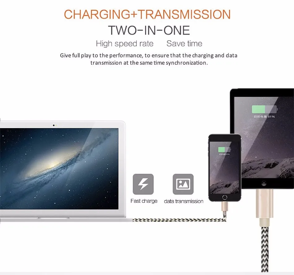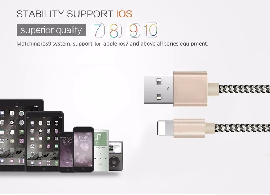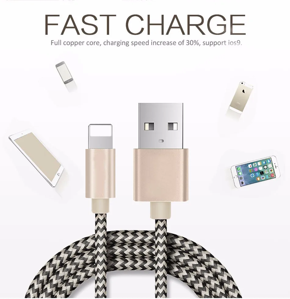 For iPhone Cable, 2.1A Fast Mobile Phone Cables USB Smart Charging Cable for iPhone 7 7 Plus 6S 6Plus 5 5S for iPad 4 2 3 for Air iPod